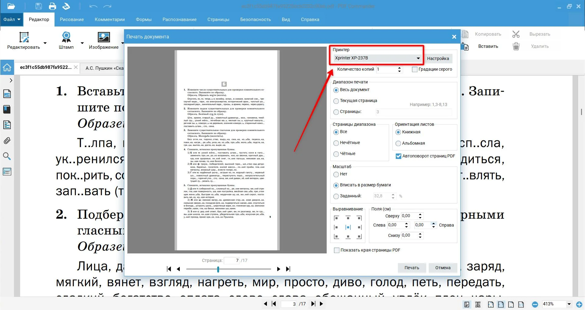 - Настройте принтер, копии, диапазон страниц, масштаб и прочее.