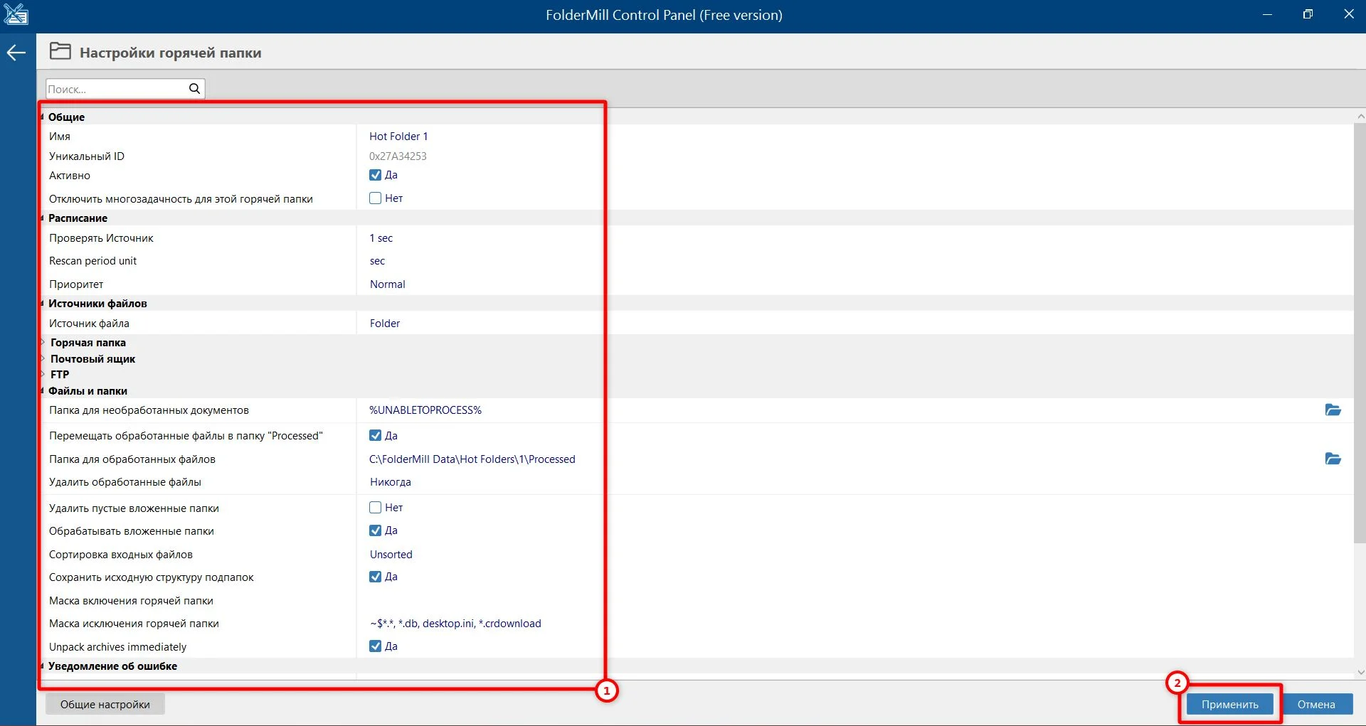 - Кликните «Настройки» и задайте необходимые параметры печати. Подтвердите свои действия по кнопке «Применить».
