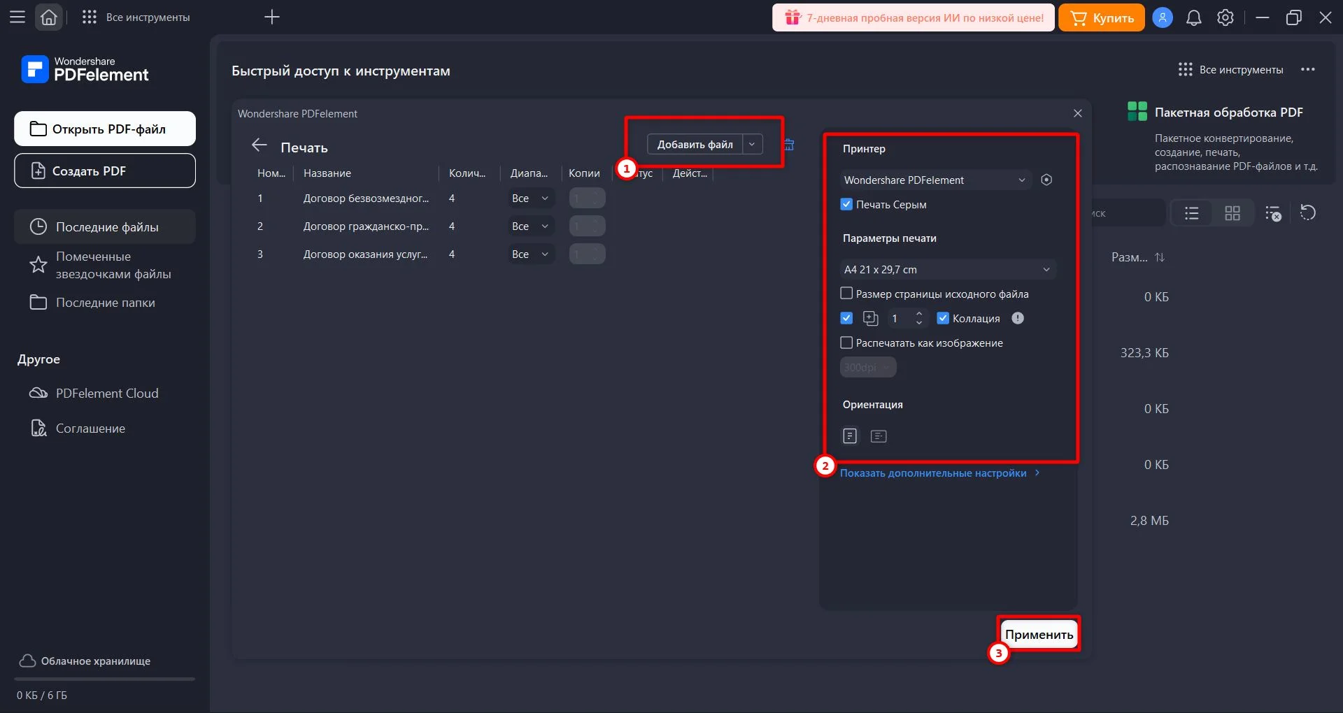 - Отправьте ПДФ в печать, кликнув «Применить».