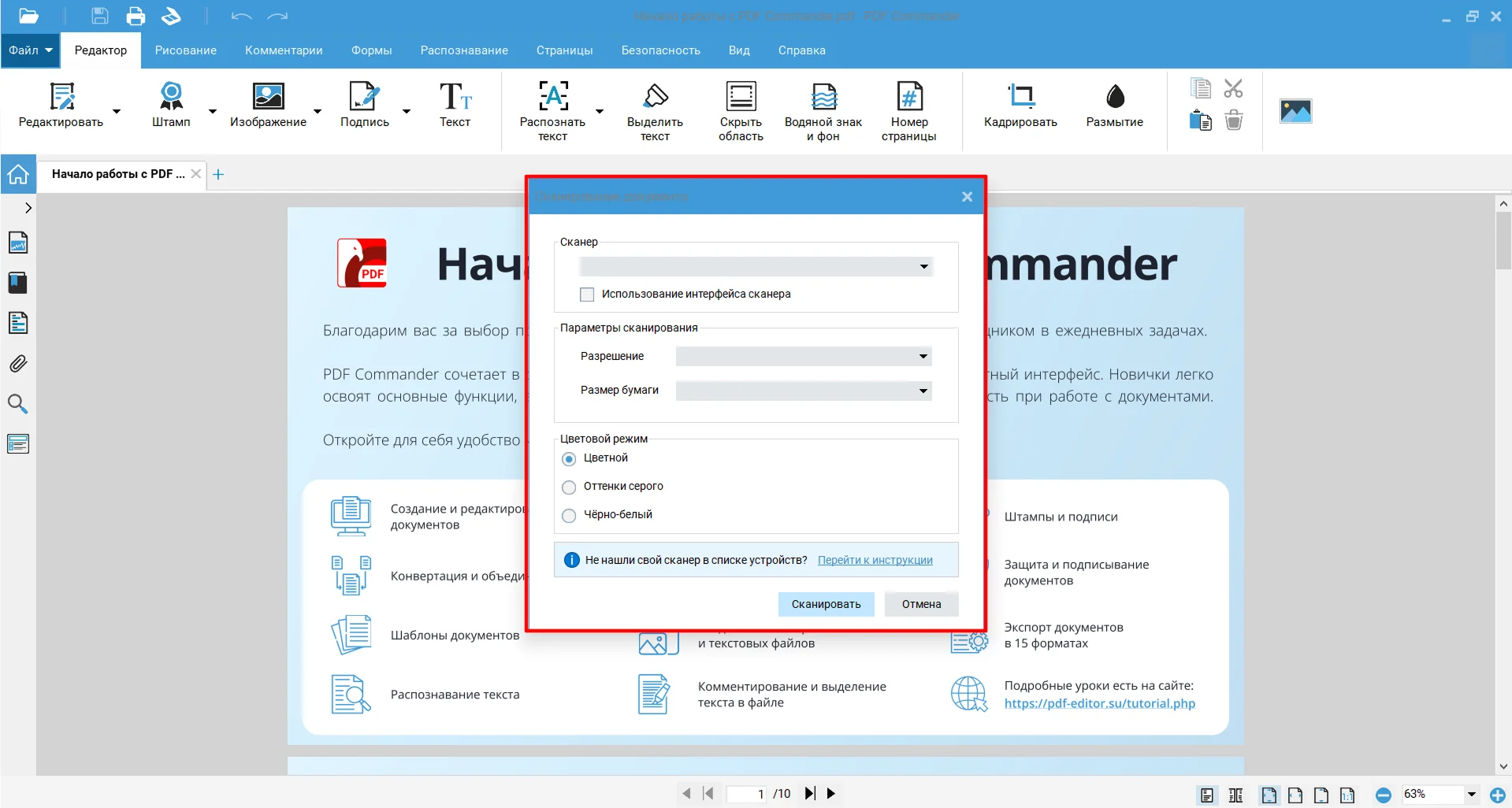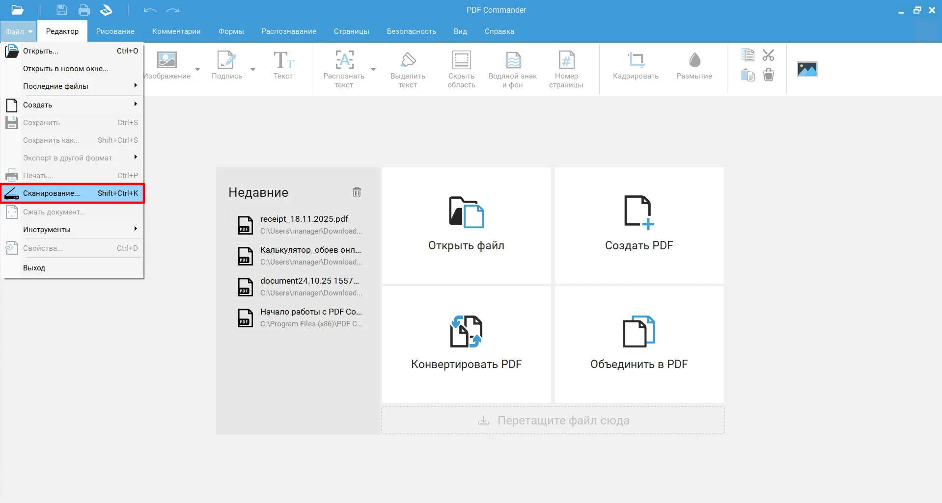 Если вам нужен многофункциональный редактор для работы с ПДФ-файлами, а не просто ПО для управления сканером, рекомендуем установить PDF Commander. Это универсальное решение, которое подойдет для использования как дома, так и в офисе. С помощью приложения вы сможете легко подготовить электронную копию справки или договора, заблюрить конфиденциальную информацию, поставить печать и подпись и т. д.