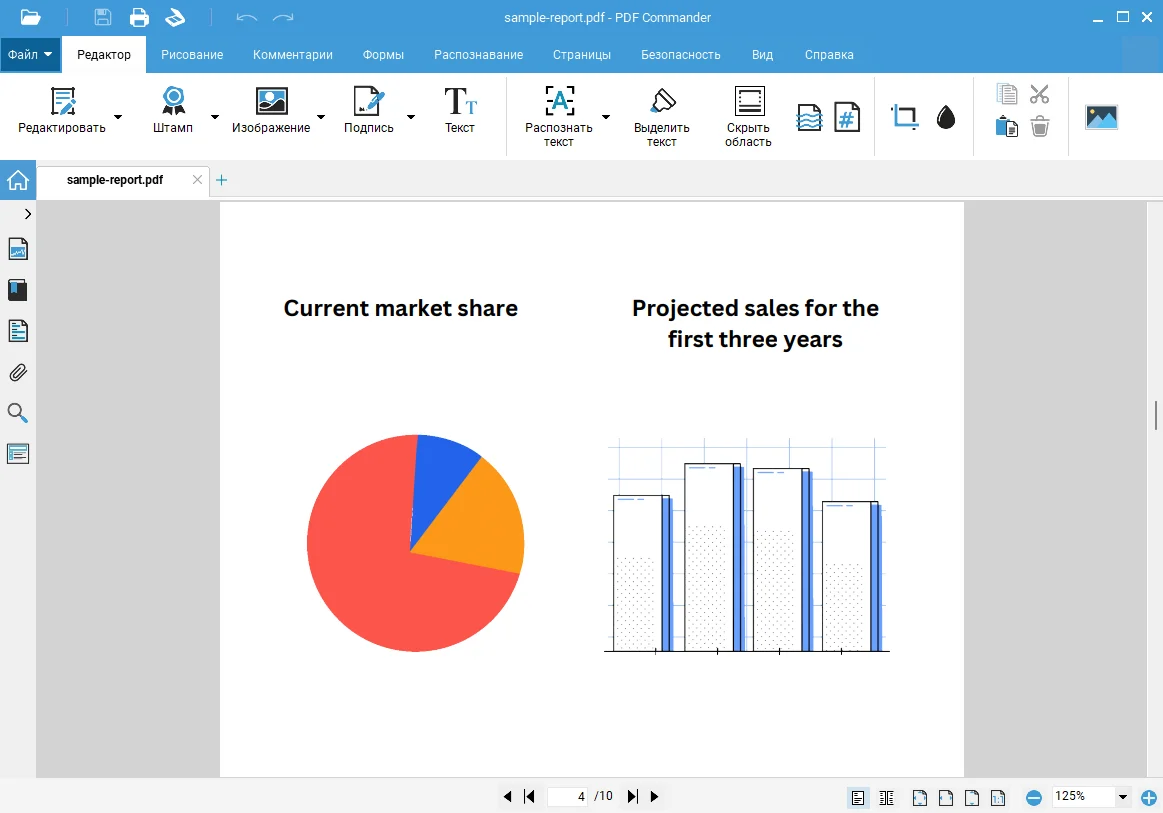 PDF Commander — универсальное офисное ПО для просмотра, создания и редактирования ПДФ на Windows и Linux. С его помощью вы можете добавлять свой текст и распознавать текст со сканов с помощью OCR, а также улучшать полученные изображения: автоматически выравнивать перекошенные страницы, обрезать поля и повышать четкость документа. Также в программе есть вставка изображений и схем, кадрирование и поворот страниц. Можно конвертировать файлы, ставить ЭЦП и проверить электронную печать, сделанную другим человеком. Вы можете в пару кликов узнать, кому она принадлежит и сколько еще работает.