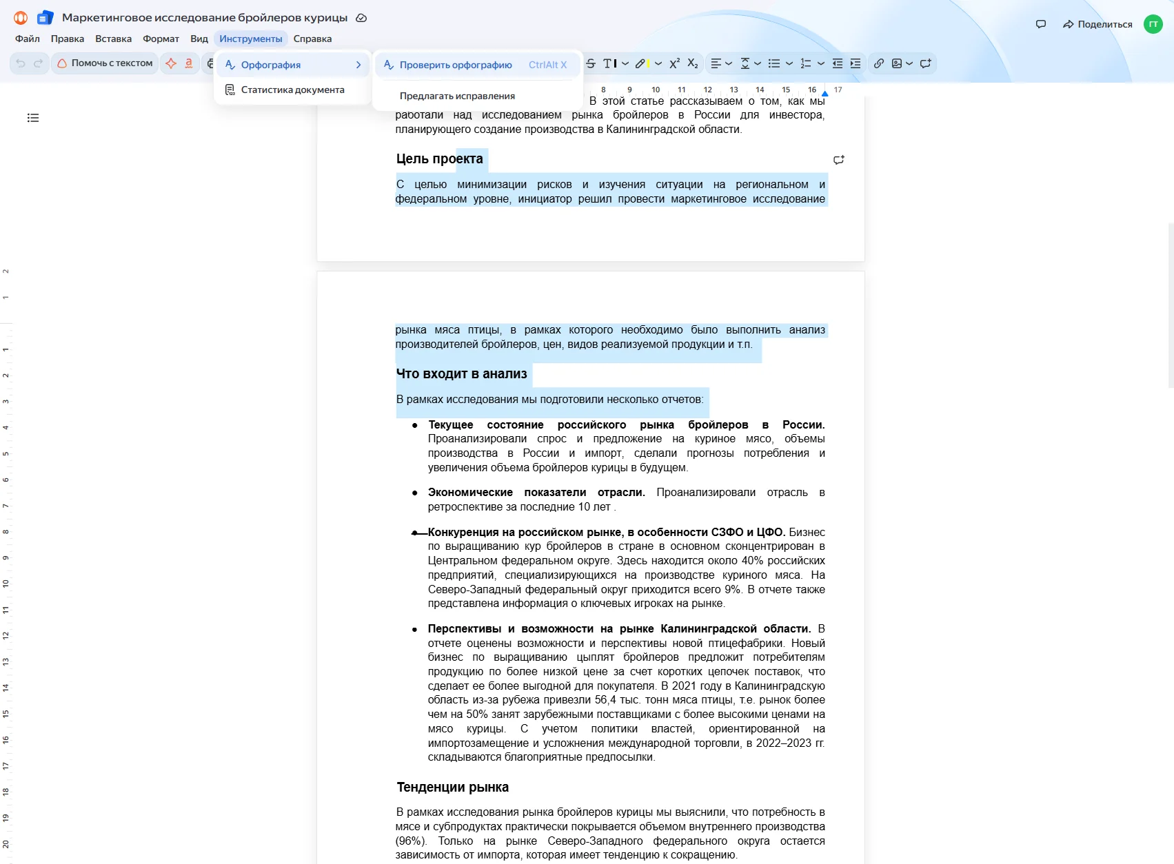 - Есть привычная разметка текста по стандартам Word.