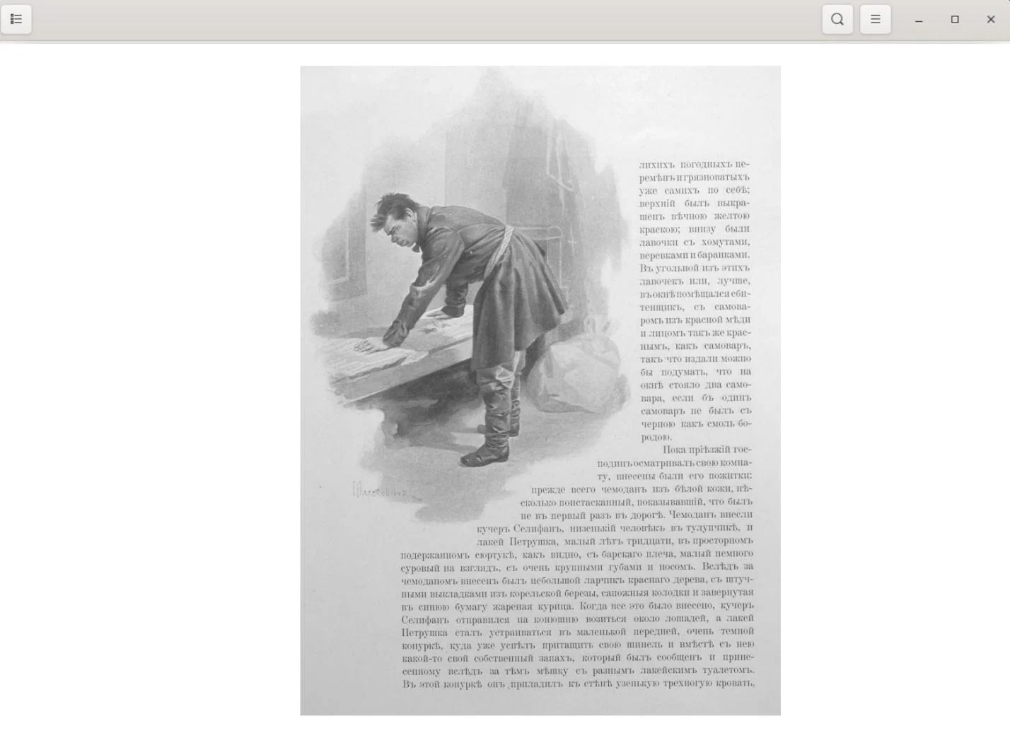 Простая читалка книг для компьютера с минимумом функций. Дает переходить между страницами с указанием точного номера, корректно открывает картинки. Есть собственный менеджер печати. Это значит, что достаточно кликнуть на иконку с принтером и выбрать, куда отправить, в какой ориентации (книжная или альбомная) и сколько требуется страниц.